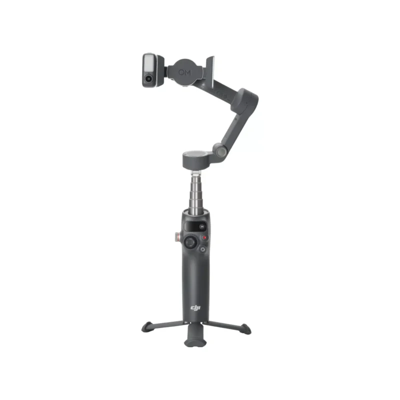 Khác với các thế hệ trước, DJI Osmo Mobile 8 được tích hợp sẵn thanh nối dài (extension rod) và chân máy mini (tripod). Điều này giúp người dùng có thể tự quay vlog, livestream hoặc chụp ảnh nhóm dễ dàng hơn mà không cần mang theo phụ kiện rời. Chân tripod có thể gập gọn, thiết lập nhanh chóng trên nhiều bề mặt, lý tưởng cho các cảnh quay time-lapse, hyper-lapse hoặc phát trực tiếp.